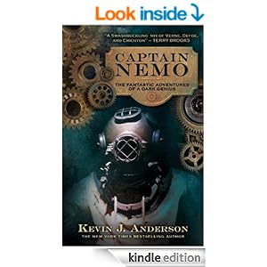 Yes, it seems I’m having a love affair with the creative genius that is Kevin J. Anderson. I recently finished Captain Nemo: The Fantastic Adventures of a Dark Genius. Anderson connected Jules Verne with his most famous protagonist making them childhood friends who shared a love interest with an independent woman in mid-19th century France. Andre Nemo recorded his misadventures including being deserted on an island attacked by pirates, traveling to the center of the earth, attempting to shoot men to the moon, exploring Africa in a balloon. Do any of these sound familiar? Exactly. Anderson proposed that Verne’s fictional stories were inspired by the real life adventures of his best friend. Most interestingly, Anderson managed to create the love story that Verne never could stomach.